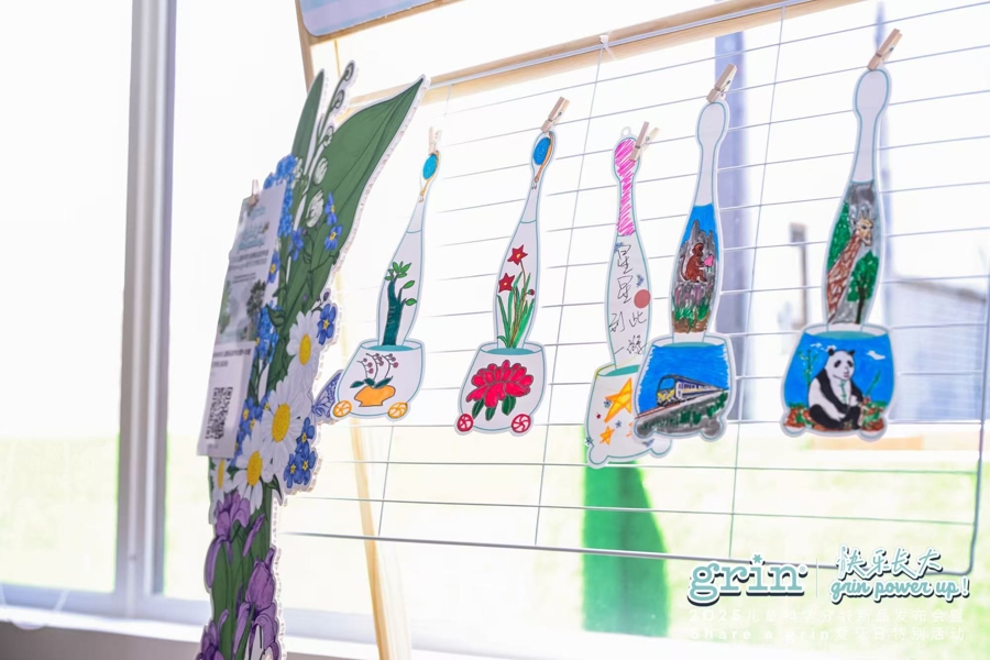 发布会现场,grin将征集画作精心陈列于“童话树”展示区,吸引众多嘉宾驻足欣赏。